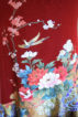 所々金彩加工、が施されています。えんじ色の地に四季の花が、とても華やかで、個性的です。